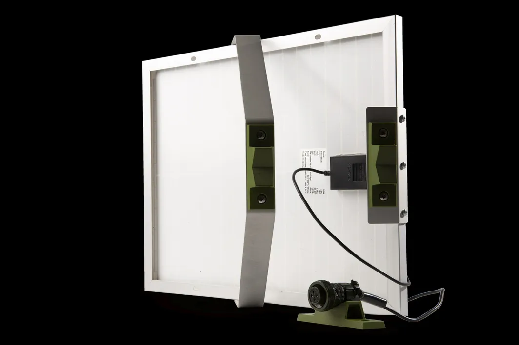SSD 20W Solar Panel. Includes Aluminum Mounting Arms x 2, ASA Pole Brackets x 2, please choose correct colour to match your REACHSSD, Mil Spec Power Connector x 1, 1-meter Cable.